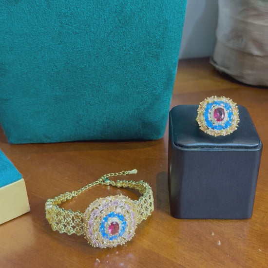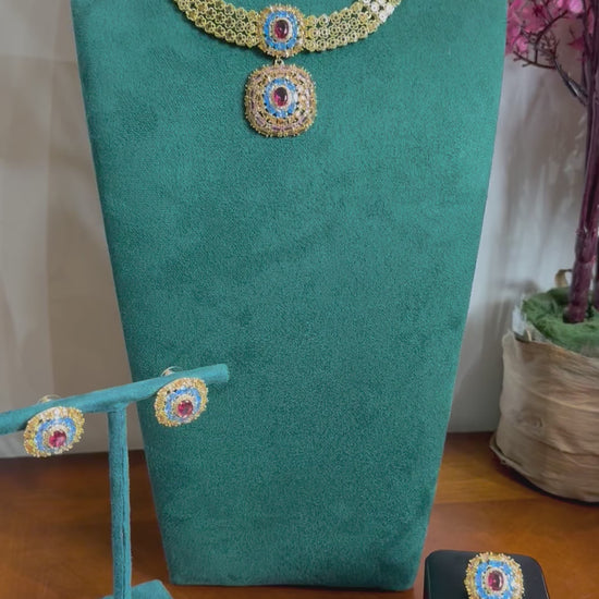 يأتي كطقم متكامل: عقد + حلق + خاتم + سوار.